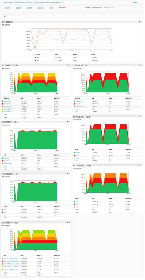 分组流量分析:显示指定接口、指定时间范围内DSCP组、接口组、应用组、IP组的流量统计,方便网络管理员根据实际情况,进行特定的流量分析,满足特定运维的要求。