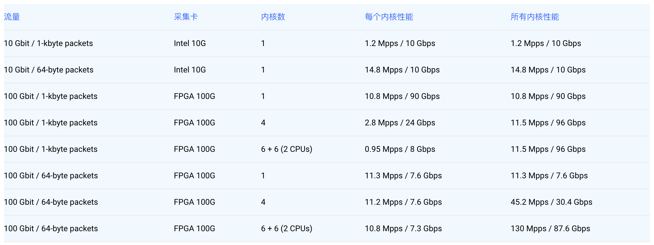 PF_RING™FT经过高度优化,能够在低端Xeon E3上使用单个CPU内核处理10 Gbit的线速,并在多核系统上扩展至100 Gbit。您可以使用github上的演示应用程序自己进行测试。
